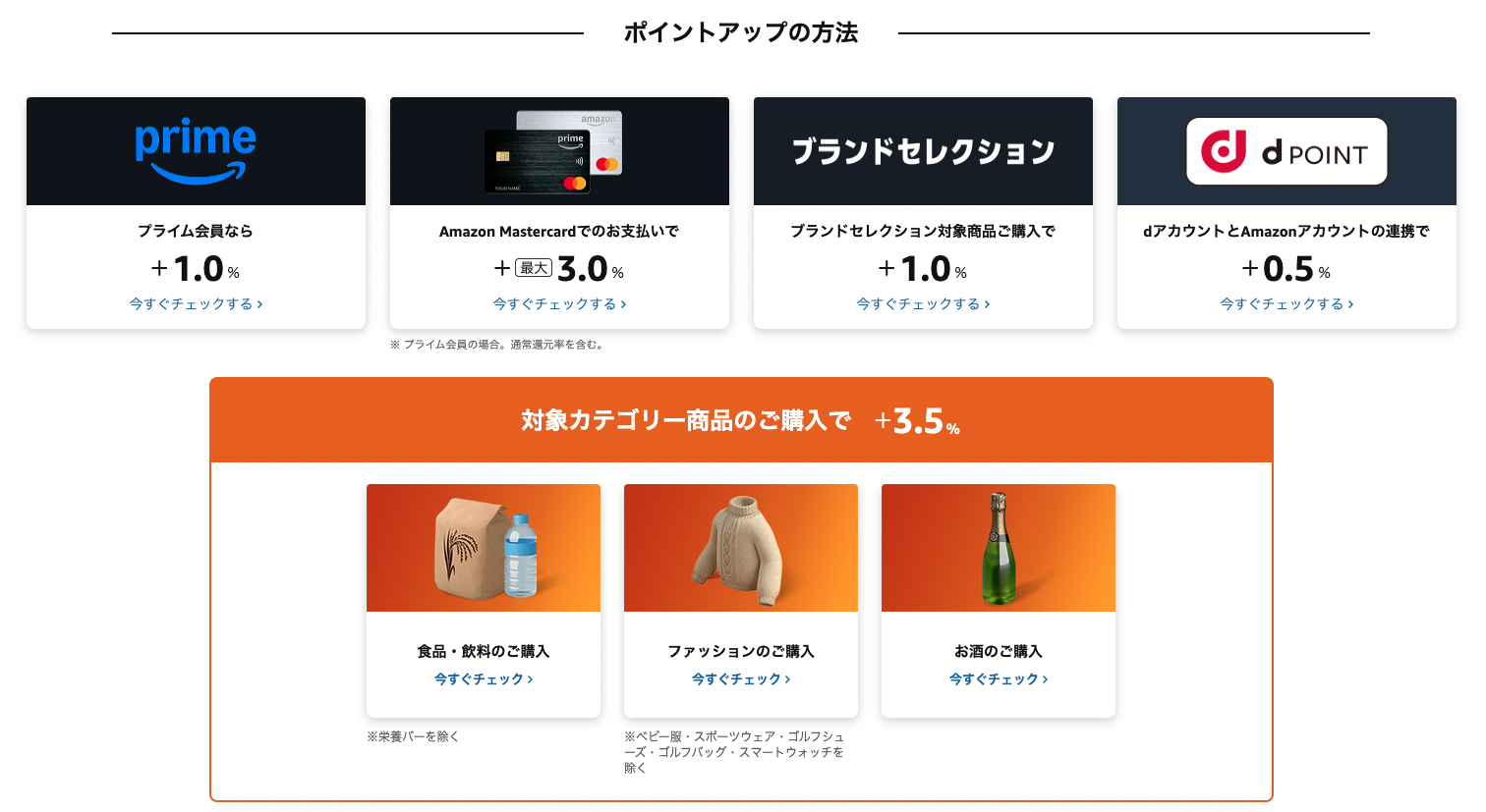 - ポイントアップキャンペーンのときに、プライム会員ならAmazonポイントの還元率が+2%になる