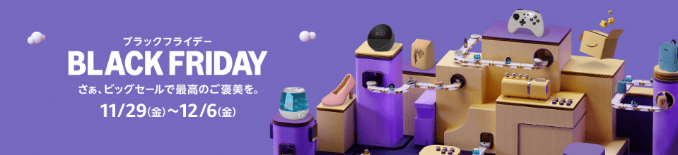 2024年のAmazonブラックフライデーは、11月29日(金)〜12月6日(金)です!
