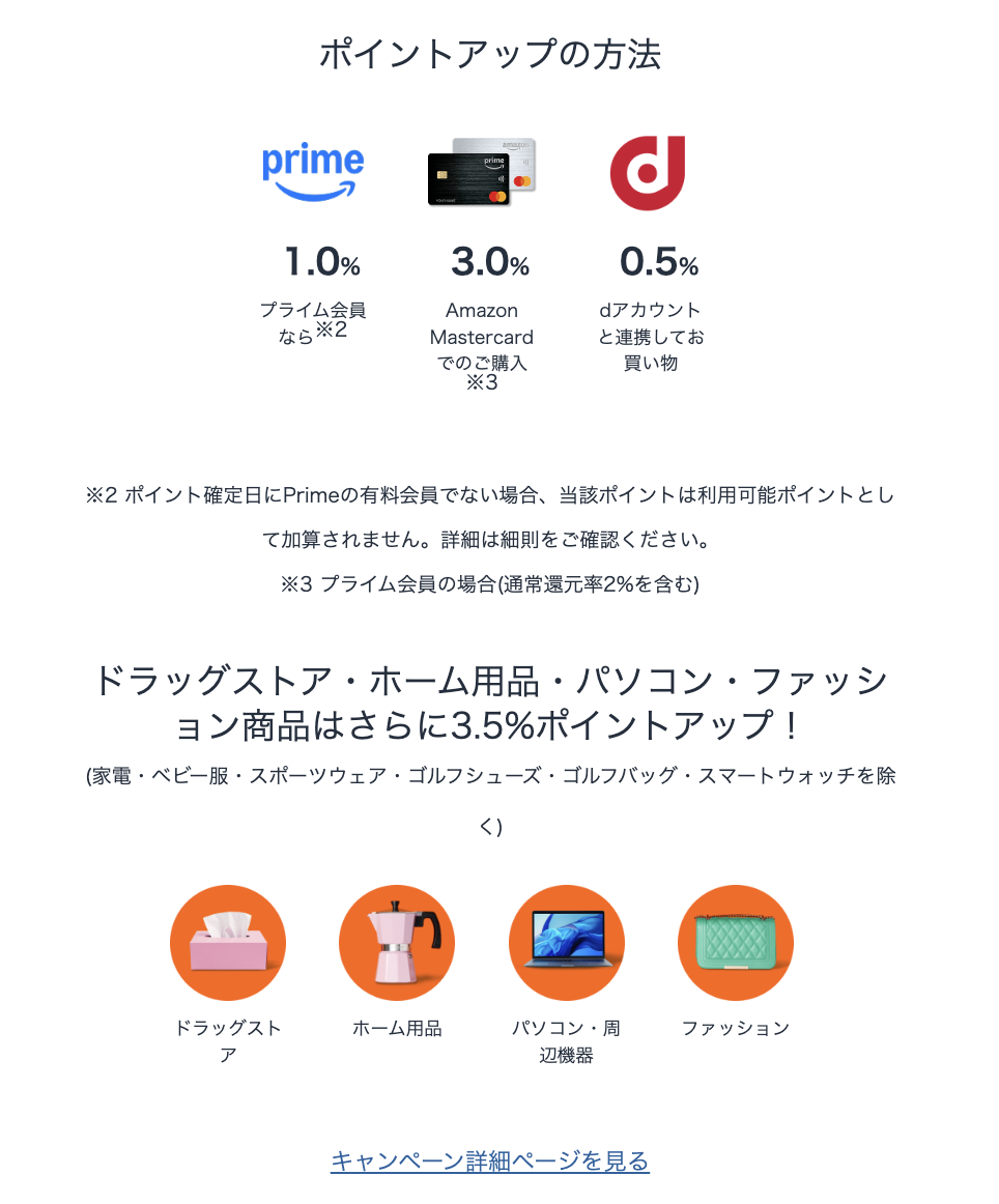 ポイントアップキャンペーンでポイントが貯まるAmazon Mastercardの新規申し込みページはこちらです>>>Amazon Prime Mastercard新規入会でポイントプレゼント!新規入会キャンペーン